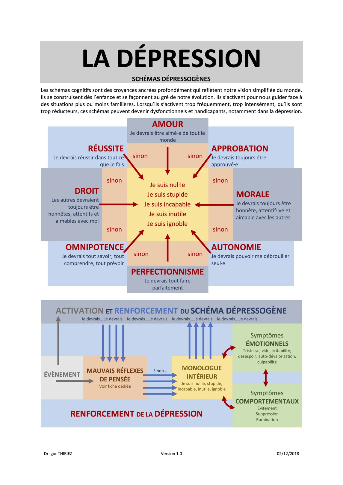 En complément du texte Le trouble dépressif majeur, voici un tableau illustré par Dr Igor Thiriez présentant les schémas dépressogènes.