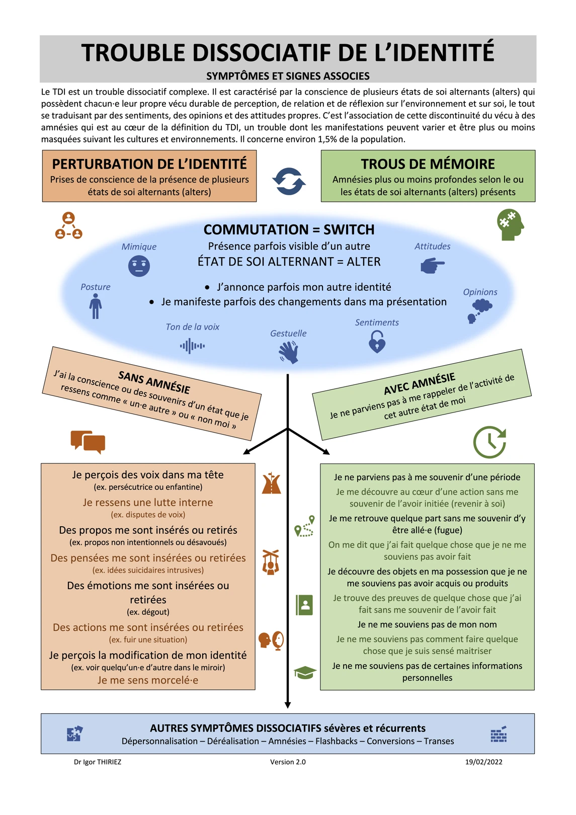En complément du texte Les troubles mentaux les plus fréquents, voici un tableau illustré par Dr Igor Thiriez présentant le trouble dissociatif de l'identité.
